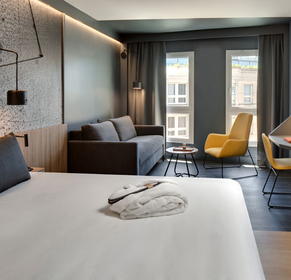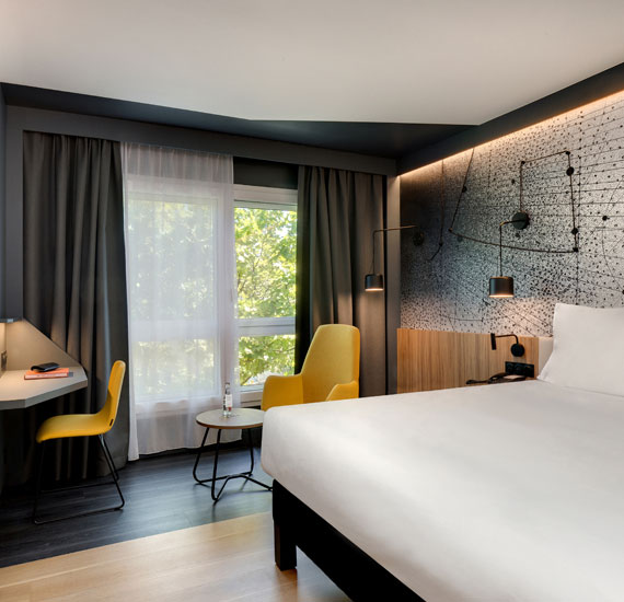 En 2026, l’hôtel propose 114 chambres entièrement rénovées, offrant confort moderne, luminosité et atmosphère chaleureuse, pour un séjour relaxant après une journée de travail ou de découverte.