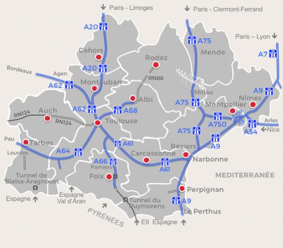 l’Occitanie bénéficie d’un réseau autoroutier dense qui relie rapidement ses principales villes.